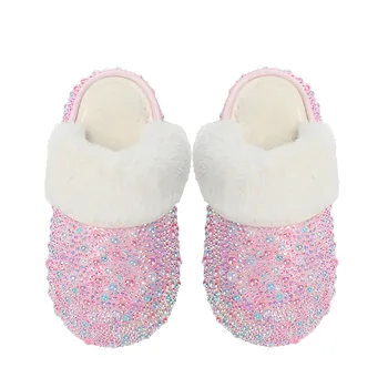 Latest Fashion Warm and Comfortable Fuzzy Home slippers Adorned with Garden-colored Beaded Decorations Diamonds Won't Fall off